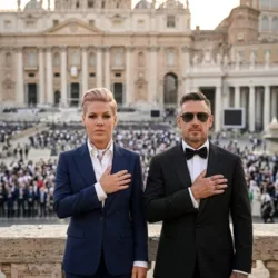 P!nk and her husband, Carey Hart, were not expected to set aside all the grandeur — but when they stepped forward to offer a quiet prayer for peace, the entire square fell into a profound silence. 🌍🕊️