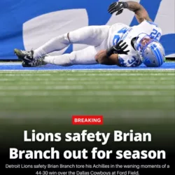 Detroit Lions safety Brian Branch, who was carted to the locker room in the waning moments of a 44-30 win over the Dallas Cowboys on Thursday night, has…