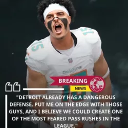 A surprising name is starting to generate serious buzz across the NFL — Jaelan Phillips. As the free-agent market continues to shift, the Detroit Lions are reportedly keeping a close eye on the 26-year-old pass rusher as they look to strengthen their defense alongside Aidan Hutchinson. Despite returning from major injuries, Phillips still made his presence felt last season with 5 sacks and 14 quarterback hits, reminding everyone that he can still be a disruptive force whenever he’s on the field. If Detroit decides to invest around $55 million in a deal like this, their defensive line could instantly become far more dangerous. But the big question that has fans curious right now is: are the Lions truly ready to make this bold move to push themselves closer to a Super Bowl run?