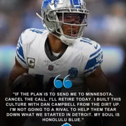 🚨 BREAKING: The entire NFL is buzzing after reports surfaced that a star wide receiver from the Detroit Lions is set to be traded to the division rival Minnesota Vikings. But what shocked fans even more was the player’s fiery reaction. The moment he learned about the move, he reportedly declared: “I’m Not Wearing Purple.” Sources close to the situation say he even hinted at the possibility of retirement rather than suiting up for a fierce NFC North rival. The statement has sent shockwaves through Detroit’s locker room and ignited heated debates across social media. Is this just an emotional response, or a serious stance that could derail the trade? And will the Lions reconsider at the last minute? There’s much more to this story than meets the eye… 👀