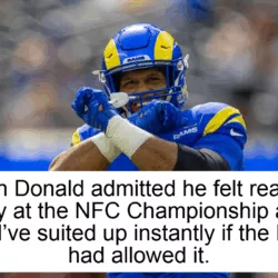 Aaron Donald may be retired, but his competitive fire clearly isn’t gone 🔥 While attending the Rams’ NFC Championship Game on Sunday, Donald admitted he felt ready to play — so ready, in fact, that he said he would’ve suited up immediately if the team had allowed it. Watching from the sideline, the legendary defensive tackle felt the adrenaline, the intensity, and that familiar itch to be in the trenches when it matters most. It’s a reminder of what made Donald special for a decade: relentless drive, elite mindset, and an obsession with winning. Even in retirement, the heart of a champion never really switches off. Hearing this, you can’t help but wonder… what if? 👀🏈