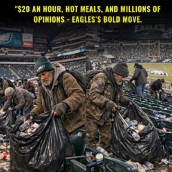 🦅💚 FOOTBALL WITH A HEART 💚🦅 The Philadelphia Eagles have just reminded the world that greatness isn’t only measured in wins. By hiring homeless individuals to clean the stadium after each weekend game — paying $20 an hour and providing hot food and drinks — the Eagles are changing lives, not just scores. As fans leave and the noise fades, an unexpected workforce steps onto the field. Under the stadium lights, people once overlooked are given dignity, purpose, and a real opportunity. This isn’t charity — it’s empowerment. In a league driven by competition, the Eagles chose compassion. This is what community leadership looks like. Sometimes, the most powerful victories happen long after the final whistle. 💚