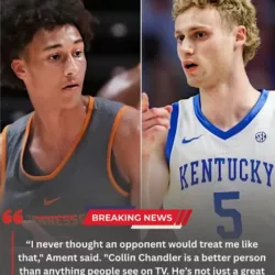 When Kentucky defeated Tennessee 80â78, Collin Chandler stood tall in victory â and then chose compassion that silenced the arena. As the final buzzer echoed and the crowd erupted following Kentuckyâs thrilling 80â78 win over Tennessee, celebration surged across the court. But just steps away from the noise, Nate Ament stood alone. Head down. Hands on his knees. The weight of one possession â one moment â pressing heavily on his shoulders.