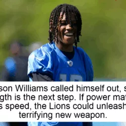 ameson Williams didnât wait for coaches, trainers, or critics to speak first. When the season ended and the locker room emptied, Detroitâs most explosive weapon took a hard look in the mirror and called himself out. Speed isnât the problem. Separation isnât the problem. In his own words, the issue is strength. Getting bumped off routes. Getting pushed in traffic. For a receiver who just cleared 1,100 yards and lives on game-breaking plays, that honesty hits different. It doesnât sound like doubt. It sounds like a warning. If Williams adds power to the speed that already terrifies defenses, the Lions may be on the verge of unleashing a version the NFL isnât ready for. đŠđ„