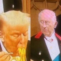 “Hand It In The Louvre”: Social Media Is Tripping Out Over Epic Photo Of Donald Trump Stuffing His Face With Spaghetti In Front Of A Shocked King Charles