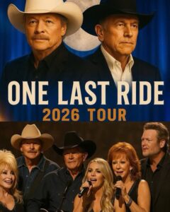 Country legends Dolly Parton, George Strait, Alan Jackson, Carrie Underwood, Reba McEntire, and Blake Shelton have announced the 2026 tour “ONE LAST RIDE.” This soul-stirring revival promises to breathe new life into the timeless spirit of country music, uniting generations of fans for an unforgettable celebration of heartfelt songs and stories.