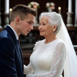 Poor Student married 71-year-old Millionaire Woman, 7 days later, he was Shocked by what he saw…..In a rain-drenched Texas college town, Mark Davis, a 23-year-old law student drowning in debt, navigated life with a heavy heart. A sudden call from Eleanor Brooks, a 71-year-old millionaire widow, cut through his routine, drawing him to a dimly lit bistro where her commanding presence filled the air. Her proposal—marriage for a way out of his struggles—hung like a shadowed promise, tempting him into a world he couldn’t yet fathom. The courthouse vows were whispered under a stormy sky, binding Mark to Eleanor’s enigmatic empire. Her sprawling estate, grand yet eerily still, swallowed him whole, its polished surfaces hiding whispers of something unspoken. Each night, the weight of unseen eyes and locked doors grew heavier, as if the walls themselves guarded a truth too dangerous to touch. Seven days later, Mark’s restless steps led him to a hidden corner of the mansion, where a single, chilling discovery waited. In the flickering light, something emerged from the shadows …