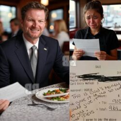 Lily, a 19-year-old waitress, had no idea that she was serving NASCAR legend Dale Earnhardt Jr.. Polite and discreet, Dale Earnhardt Jr. enjoyed his meal without drawing attention to himself. But as he left, he left a receipt for the waitress… and walked away with a smile. Lily opened it out of curiosity, but immediately began to cry. What Dale Earnhardt Jr. wrote was more than just a thank you: It changed her life…