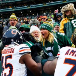 NFL fans are loving a viral photo of Chicago Bears linebacker Amen Ogbongbemiga staring down angry Green Bay Packers fans during Sunday’s Week 18 game at Lambeau Field. Cairo Santos kicked…