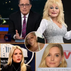 DOLLY PARTON BREAKS HER SILENCE ON VIRGINIA GIUFFRE: The Queen of Country Didn’t Just Watch Stephen Colbert’s Shocking Monologue — She Stared Straight Into the Camera, Questioned Why “a Woman Who Fought the Darkness Was Punished by the Very System Meant to Protect Her,” Spoke Chilling Words About the State’s So-Called ‘Credible Justice’ for Victims, and Left the Late-Night Studio Frozen as Colbert Sat There Stunned… While Her Hints About Pam Bondi, Powerful Men, and a Coming Reckoning Have Fans Wondering What She Knows — and Why She Chose This Moment to Finally Speak Out