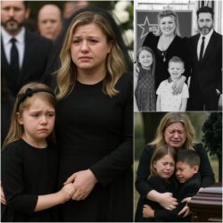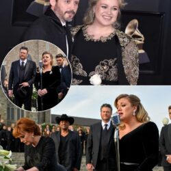 This morning, at 9 o’clock, Brandon Blackstock’s funeral was solemnly held at the First Baptist Church, Fort Worth, Texas. The sky was covered with gray clouds, and weak rays of sunlight filtered through the church’s glass windows, as if to share the loss of everyone. Brandon lay peacefully in a shiny walnut coffin… Before the coffin was brought inside for the private funeral, Kelly Clarkson suddenly stopped at the steps of the church. Her voice choked up, her eyes red: “Let me sing him a song… as well as to comfort my mother and my children…” And then, in the quiet courtyard, Kelly sang “Because You Loved Me” – the sound echoed, blending with the early Texas wind. Beside her, Blake Shelton stood still, his eyes filled with tears, while Michael Bublé nodded slightly to the beat, his hand resting lightly on Kelly’s shoulder as if to give him strength. Meanwhile, in front of the casket, Reba McEntire — who had been Brandon’s stepmother — could no longer keep her composure. She wore a long black dress, a mourning cap with a veil that partially covered her face. She knelt down, her hands trembling on the cool wooden surface, tears falling continuously. Her voice was lost in sobs: “I’m sorry I couldn’t protect you more…” The people around bowed their heads in silence, letting her cry beside the stepchild she had loved like her own flesh and blood…