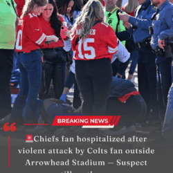🚨 Chiefs Fan Hospitalized After Brutal Attack by Colts Fan Outside Arrowhead — Suspect Flees Into the Night The crimson tide of Chiefs Kingdom had barely receded…