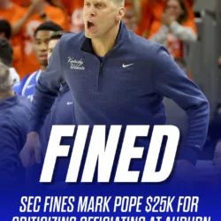 Mark Pope will have to pay the SEC $25,000 for his postgame actions and comments about the officiating at Auburn.
