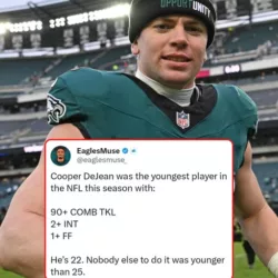 🦅🔥 PHILLY WITNESSING SOMETHING SPECIAL 🔥🦅 Philadelphia has seen its share of defensive legends, but what Cooper DeJean is doing at just 22 years old feels truly unreal. He plays with the physicality of a linebacker and the ball skills of an elite corner, combining power and precision in a way rarely seen so early in a career. Even more impressive is his consistency — the kind most players need years to master. Making history as the youngest player ever to reach these defensive milestones, DeJean is doing it in the NFL’s toughest division, against elite competition every week. This isn’t just talent — it’s greatness in the making. Philly’s future is in elite hands. 💯🦅