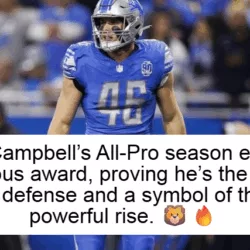 🦁🔥 DETROIT LIONS PRIDE! 🔥🦁 Jack Campbell has officially etched his name among the NFL’s elite, winning a prestigious award after a dominant All-Pro season. From his sharp instincts and bone-crushing tackles to his calm leadership at the heart of the defense, Campbell played with intelligence, toughness, and relentless effort every single snap. This honor isn’t just a recognition of elite performance — it’s proof of the culture Detroit is building. Discipline. Heart. Fearlessness. Jack Campbell embodies everything the Lions stand for. Detroit is rising, and with leaders like Campbell setting the tone, the future has never looked brighter in the Motor City. 💙🦁