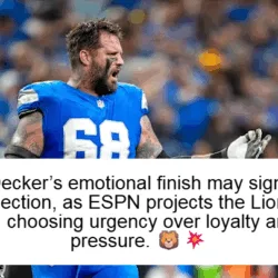 🚨 NFL SHOCKWAVE IN DETROIT 🚨 Taylor Decker’s season-ending words sounded emotional, reflective — like a man sensing more than just another offseason ahead. Now, a new ESPN projection hints at a stunning twist: the Lions may move on from their longtime left tackle, despite a $60 million extension signed just last year. Age, mounting injuries, and a noticeable drop in pass and run blocking efficiency have quietly changed the math behind the scenes. What once felt like loyalty now looks like urgency. If this prediction becomes reality, Decker’s farewell may not be his choice — but Detroit’s. A franchise cornerstone could become a cap casualty faster than anyone imagined. 🦁💥