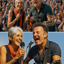 As Bruce Springsteen took the stage with his usual fire and fury, a surprise moment unfolded when folk legend Joan Baez stood up from the front row, raised her fist, and shouted, “We still believe in truth!” The crowd erupted — not just for Bruce’s anthem, but for Baez’s raw courage. Later, in an emotional backstage exchange caught on video, Baez embraced Springsteen and said, “I had to be here. America’s turning into a shithole country — but your voice still gives us hope.” Fans wept, cheered, and shared the moment online like wildfire. In one electrifying night, music and protest collided — and the Boss had a rebel queen by his side.